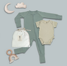 Your perfect bamboo starter set! This set includes our Versatile Zip Romper, Essential Snap Bodysuit, and a bamboo crib sheet. Spoil your favorite baby with naturally soothing, hypoallergenic, buttery soft bamboo. This Earthly Threads bundle will keep baby comfortable, dry, and help them have more restful sleep.